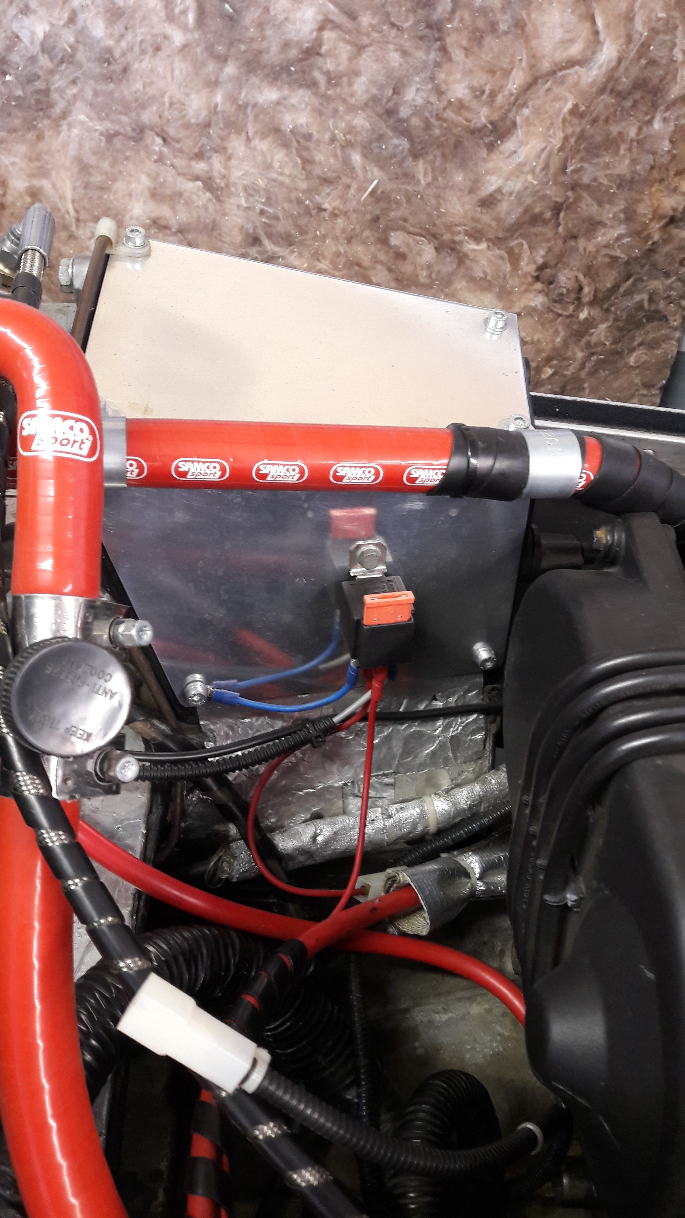 Ich habe im Rahmen des Umbaus gerade noch einen Start-Engine-Knopf eingebaut. Hier habe ich das original Caterham Teil (Teilenummer SPB107) verwendet. Es kann aber jeder beliebige Taster (Schließer) verwendet werden, da lediglich der Strom für die Relaisspule geschaltet wird (wenige mA).