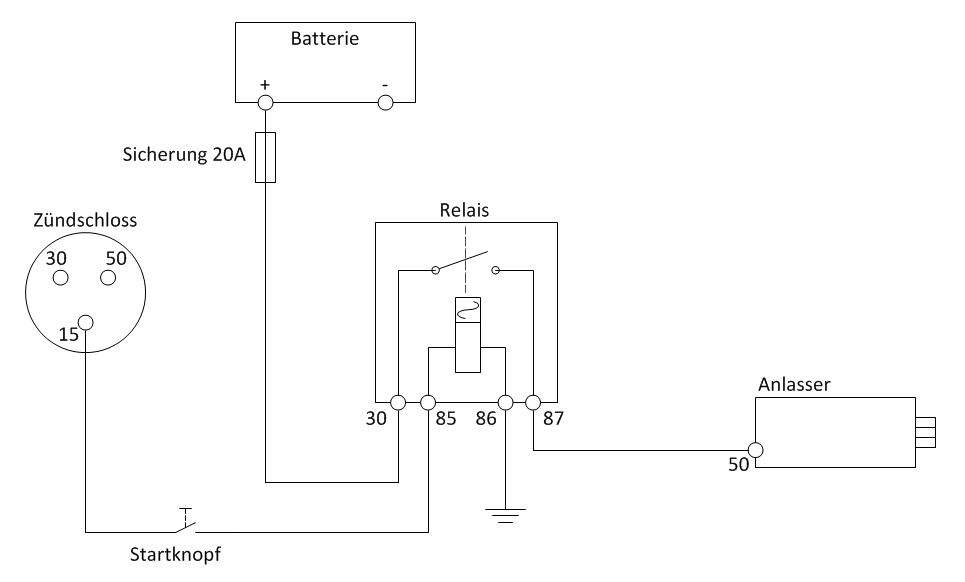Ich habe ein Relais mit integrierter 20 A Sicherung verwendet, da ich gerade kein anderes zur Hand hatte.