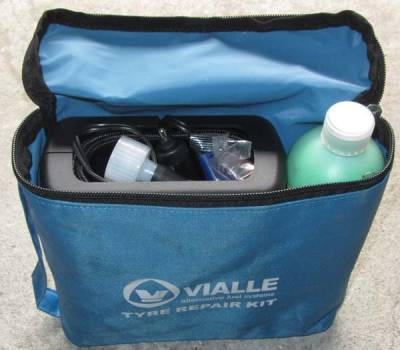 Minikompressor - bei mehrteiligen Felgen kann die Luft auch mal nicht durch ein Reifenschaden entweichen und wenn man dann gleich die Flasche Tirefit Pannenspray einsetzt …, dann lieber erst mal nur den Kompressor ansetzen.